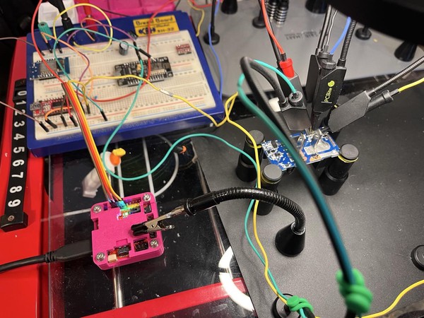 The author of the blog post noted that the Realtek board is supported in ESPHome via the libretiny project Archive. So I connected up the board to my probing station and attempted to make a serial connection to the microcontroller.