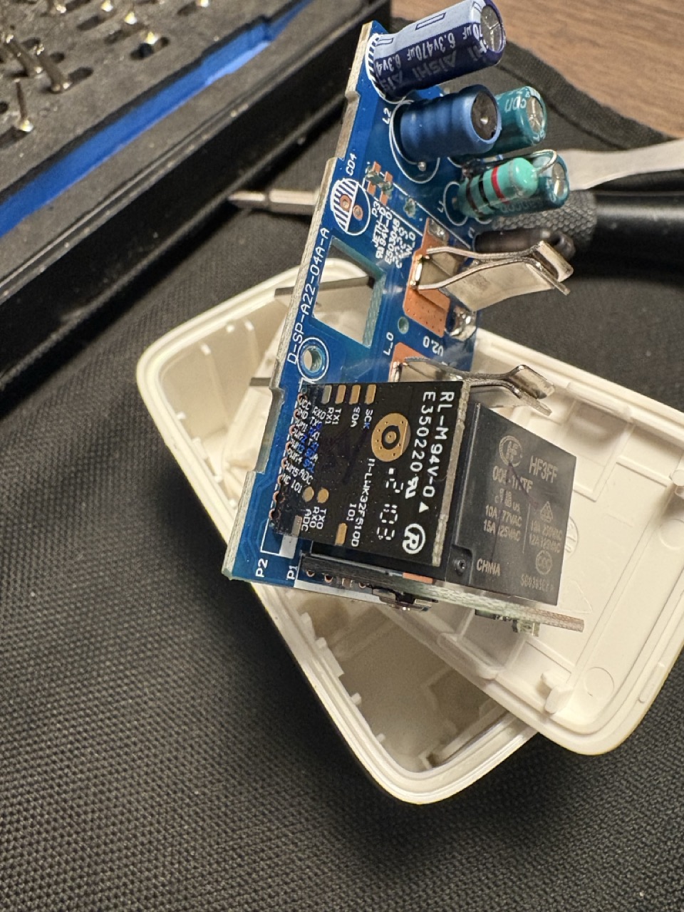 I couldn’t get a good look at the microcontroller markings, so I desoldered the board and identified it as a Realtek RTL8710BX (not an ESP32 😱). Surprised but undeterred, I searched online to first find a github repo, the device fcc application and eventually came across a nice writeup of the disassembly and firmware overwrite process I was attempting for a similar device Archive (quite a head start).